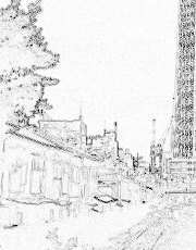 東京スカイツリーを見上げながらスケッチを楽しんでいる人が意外と多いのですね。テレビで見る「ちい散歩」でも最後にはスケッチでしめていました。私もスケッチができたらと思っていたのですが、絵など書いたことも無く見ているばかりでした。デジタルカメラをいろいろ操作していたら、思わぬ機能を見つけました。下の写真のように撮影できるんですね。早速撮影してきました。これは面白い新しい発見です。